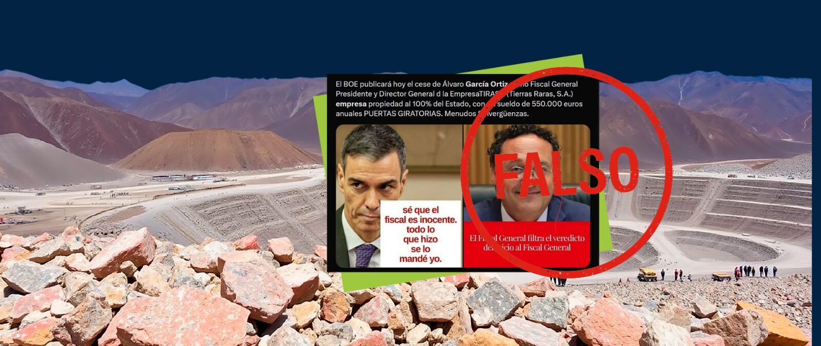 No es cierto queÁlvaro García Ortiz vaya a ser el responsable de TIRASA, una empresa estatal dedicada a la extracción de tierras raras. La empresa no existe. Además, sigue siendo fiscal general del Estado hasta el nombramiento de su sucesora.
