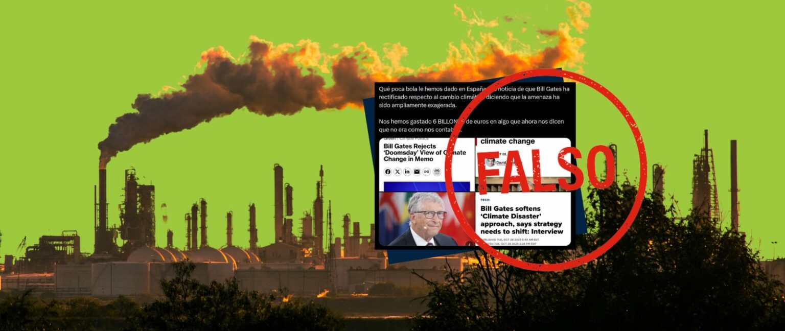 “Bill Gates admite que estaba equivocado con el catastrofismo del cambio climático, después de muchos años creando daño y dolor con esa excusa, y que no es una amenaza tan grave para la humanidad como se quiere hacer ver” (sic). En los últimos días circulan numerosos mensajes en redes sociales como el que encabeza este artículo.