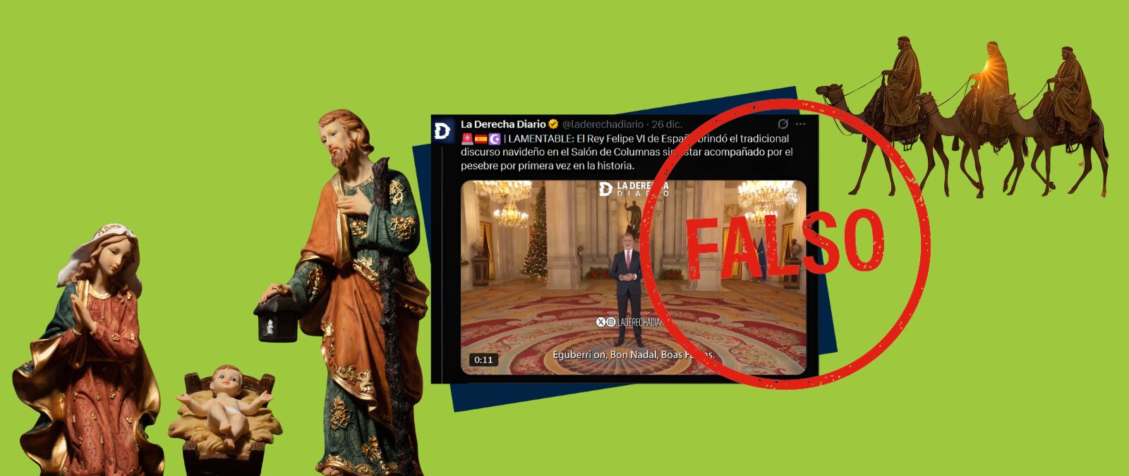 “LAMENTABLE: El Rey Felipe VI de España brindó el tradicional discurso navideño en el Salón de Columnas sin estar acompañado por el pesebre por primera vez en la historia” (sic). Circulan en redes sociales mensajes como este en los que se asegura que durante el mensaje de Navidad del rey Felipe VI del 24 de diciembre no había ningún pesebre, símbolo católico.