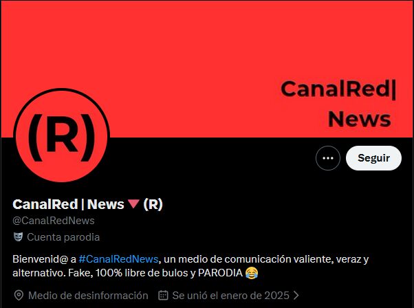 El mensaje sobre la propuesta de cambio de nombre de la capital aragonesa se difunde desde la cuenta de X @CanalRedNews que en su biografía deja claro que se trata de una cuenta parodia de Canal Red de Pablo Iglesias: “Bienvenid@ a #CanalRedNews, un medio de comunicación valiente, veraz y alternativo. Fake, 100% libre de bulos y PARODIA.”