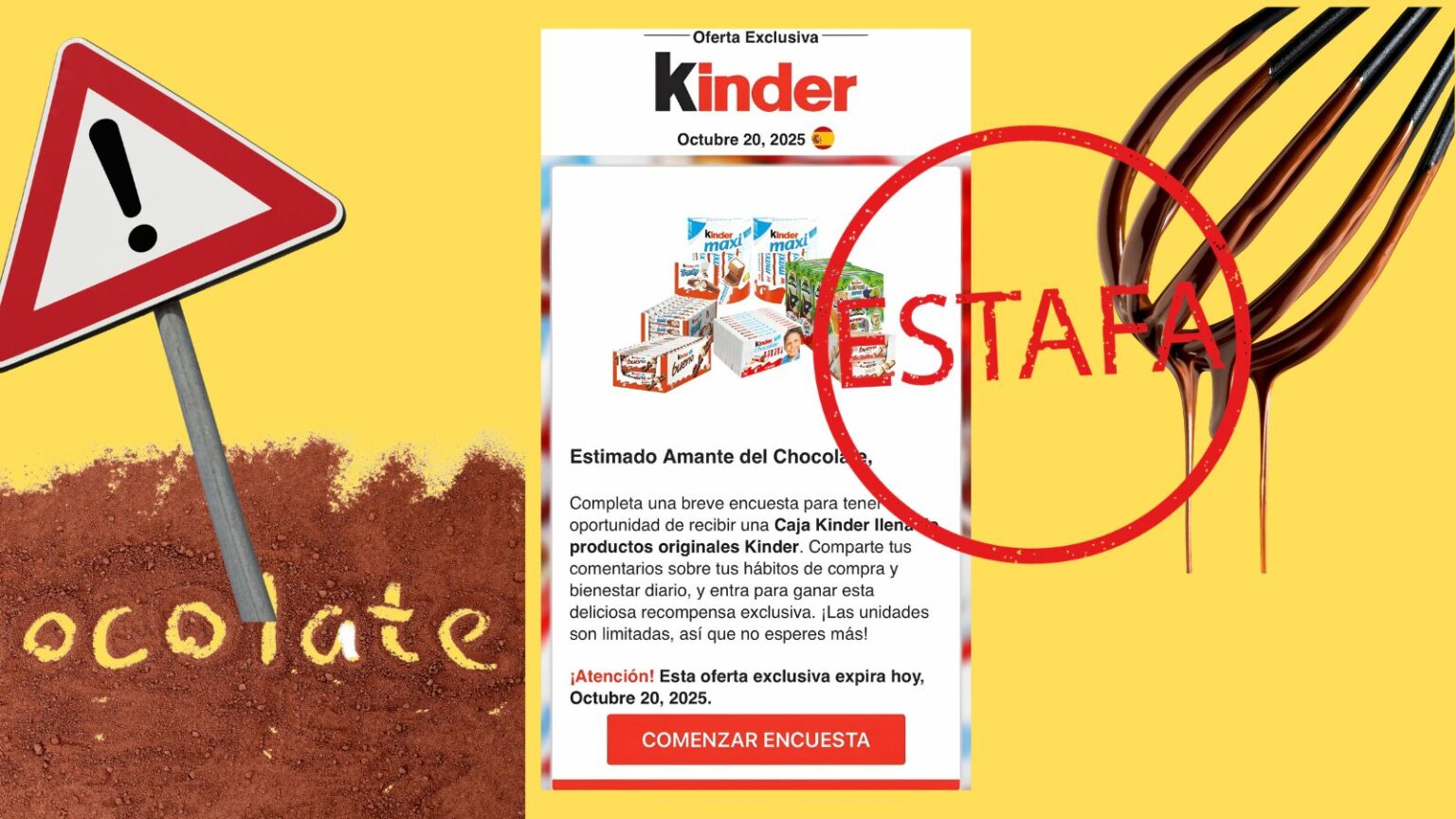 Cuidado si has recibido un email en nombre de Kinder donde se te informa que has ganado esta ‘recompensa exclusiva’. Se trata de un caso de phishing, una técnica que consiste en el envío de un correo electrónico por parte de un ciberdelincuente a un usuario simulando ser una empresa legítima con el objetivo de robar datos personales o bancarios.