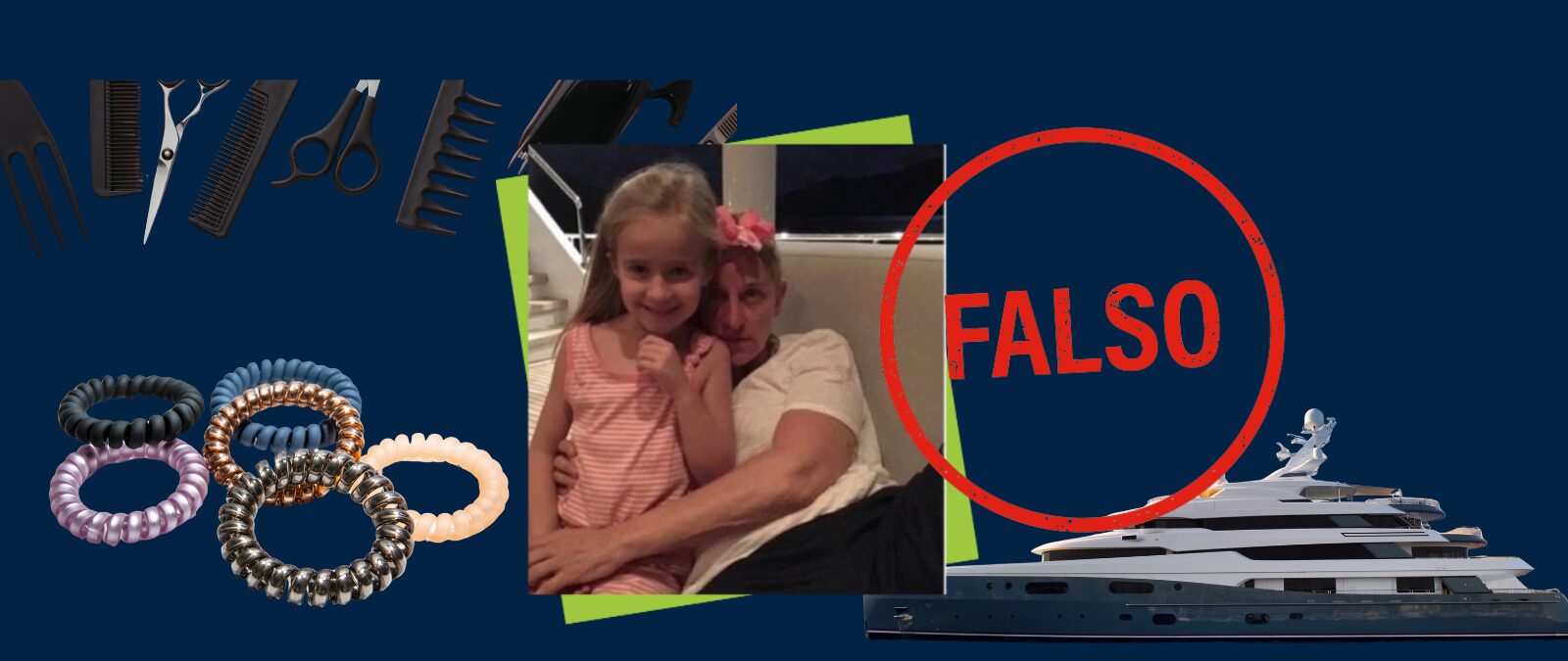 Se ha viralizado en redes sociales una imagen en la que la presentadora Ellen DeGeneres aparece abrazando a una niña en la cubierta de un barco. La fotografía se comparte con mensajes que vinculan falsamente a la actriz con actividades ilícitas: “Una fotografía muestra a Ellen DeGeneres con una niña en la isla de Epstein.»