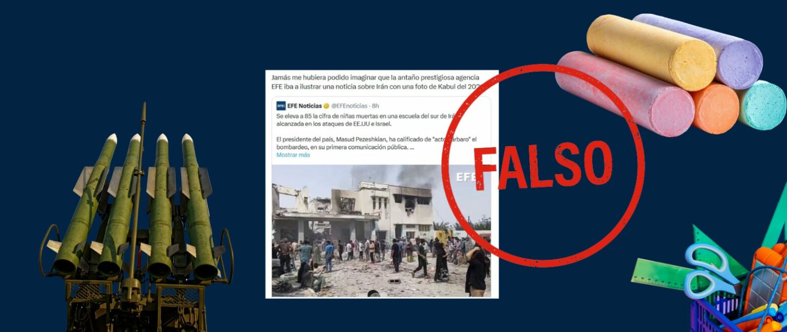 En ese contexto, algunos usuarios en redes sociales están afirmando que “el vídeo que circula sobre un supuesto ataque de Israel y Estados Unidos contra una escuela en Irán es falso” y que en realidad “se trata de un atentado perpetrado por ISIS en Kabul, Afganistán, en 2021”. Además, en algunos mensajes se acusa a la Agencia EFE de desinformar.