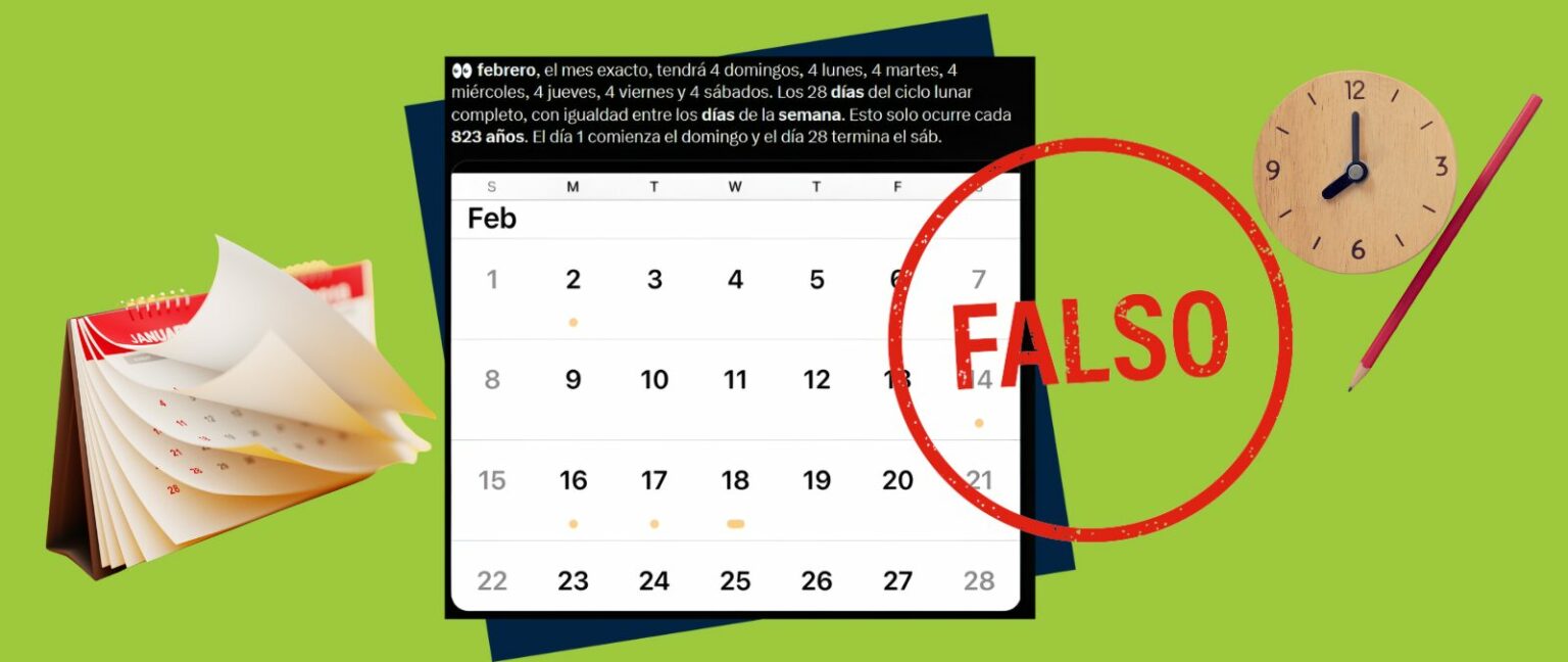 Sin embargo, esto es falso. Todos los años se repiten en febrero los cuatro días de la semana, a excepción de los años bisiestos. Además, se trata de una desinformación que vuelve cada año por estas fechas.