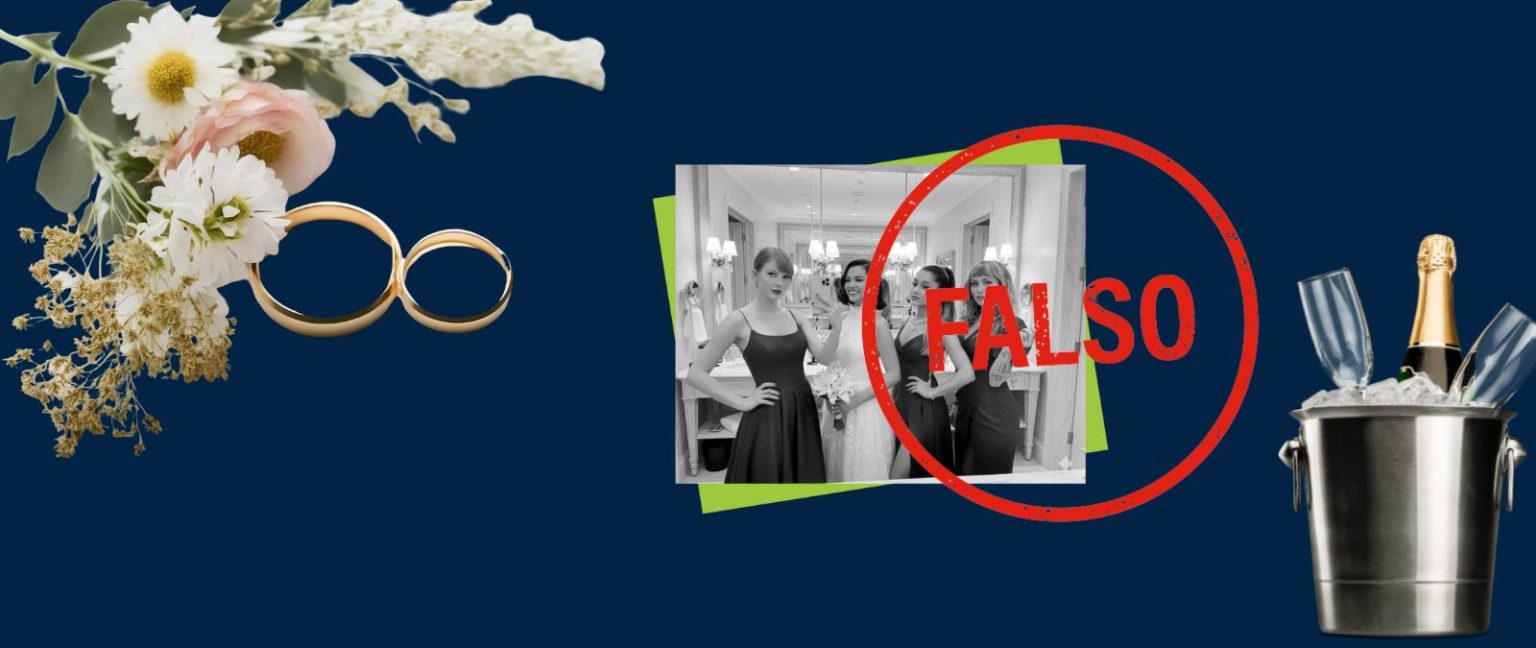 Esta foto de Selena Gómez el día de su boda ‘con sus damas de honor Taylor Swift, Ariana Grande y Miley Cyrus’ no es real