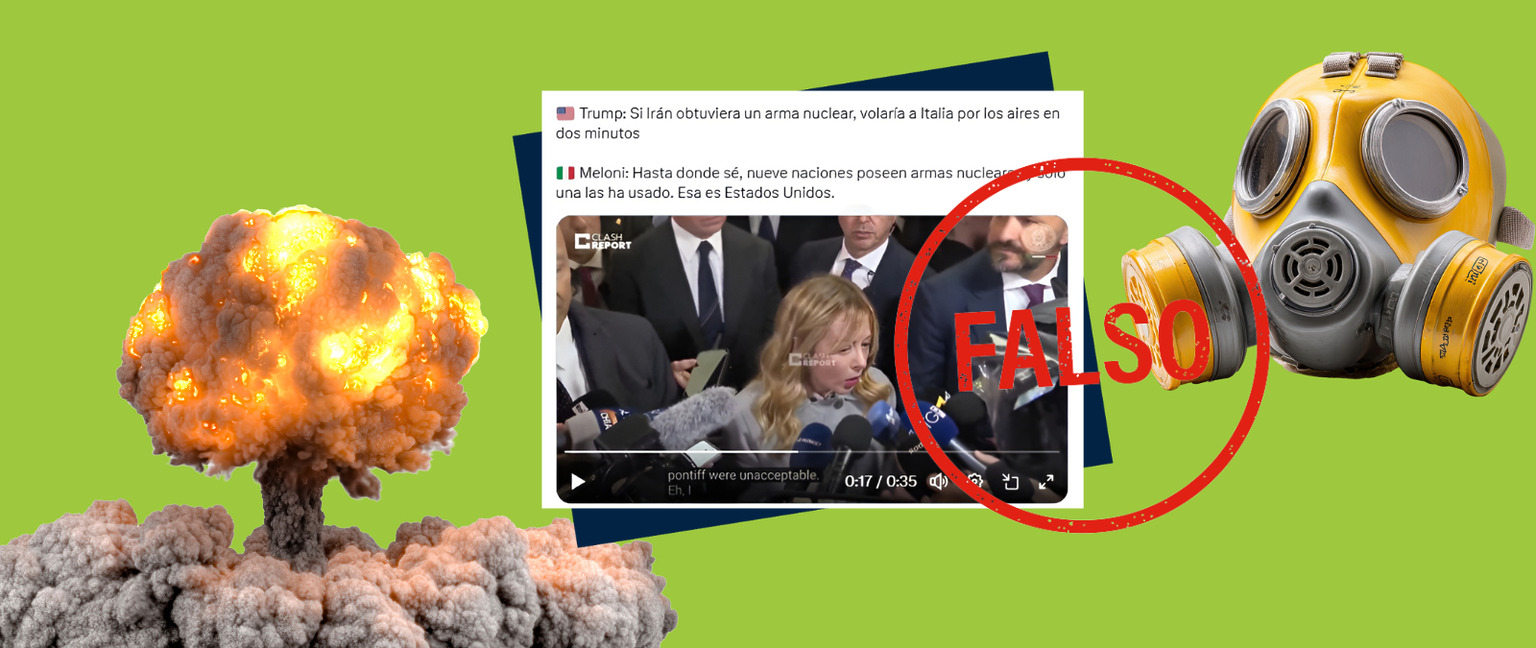 El vídeo, en realidad, muestra palabras reales de Meloni y esta declaración falsa. Las publicaciones manipuladas utilizan como base una reacción oficial de Meloni del 13 de abril de 2026. En ella, la mandataria calificó de «inaceptables» las críticas vertidas por Donald Trump en su red Truth Social, donde el expresidente acusó al papa León XIV de ser «débil» y favorecer a la «izquierda radical». Ante esto, Meloni fue contundente: “Considero inaceptables las palabras del presidente Trump hacia el Santo Padre”, subrayando que es deber del Papa abogar siempre por la paz». En ningún momento de esa intervención mencionó el uso histórico de armas nucleares por parte de EE. UU.