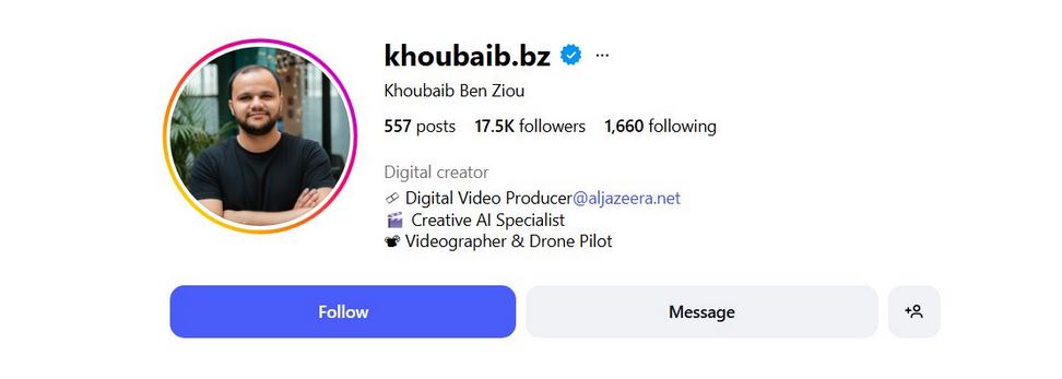 Cuenta de Instagram de Khoubaib Ben Ziou, especialista creativo en IA