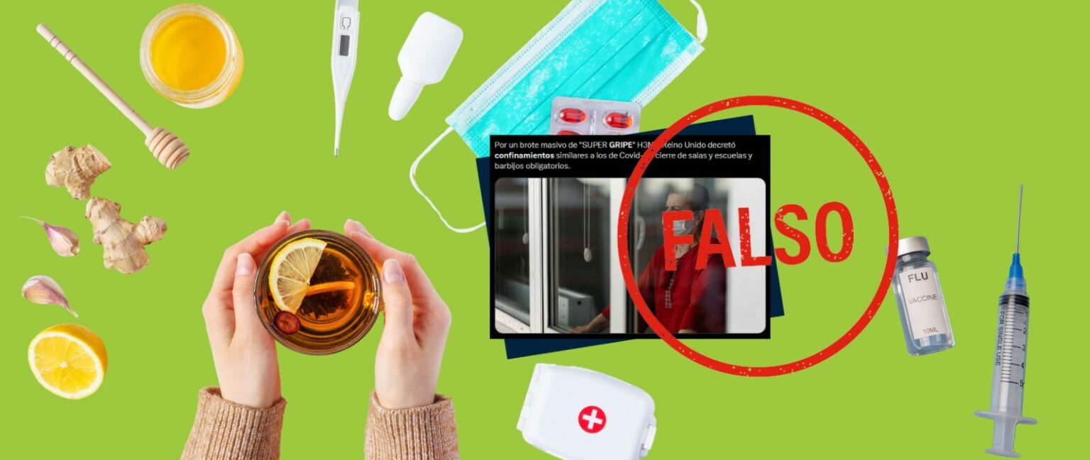 “Ahora salieron con OTRO virus, se llama GRIPE H3N2, y en Reino Unido empezaron los confinamientos y barbijos. No les bastó con el COVID que ahora quieren inyectaenos mas cosas” (sic), se puede leer en un mensaje viral en X que acumula más de 5.000 reproducciones.
