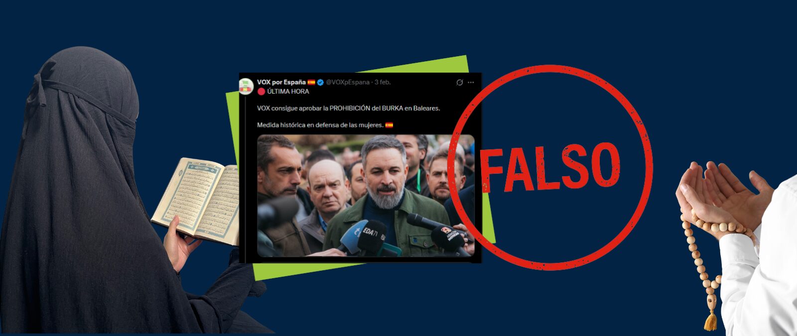 Circulan mensajes en redes sociales que aseguran que la formación de Santiago Abascal ha conseguido aprobar en las Islas Baleares la prohibición del burka.