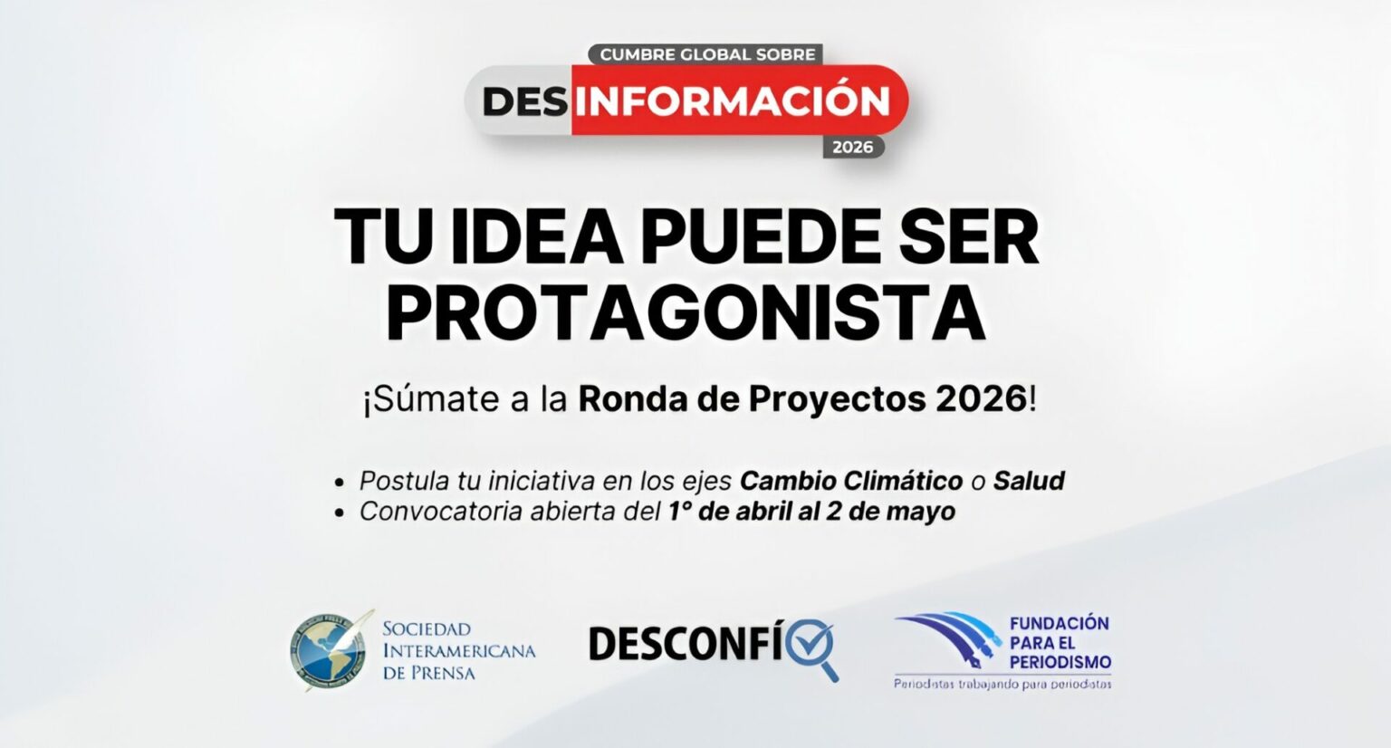Los proyectos seleccionados serán parte de la Ronda de Proyectos que será parte del Programa de la Cumbre Global sobre Desinformación que se realiza de forma virtual los días 27 y 28 de mayo de 2026.