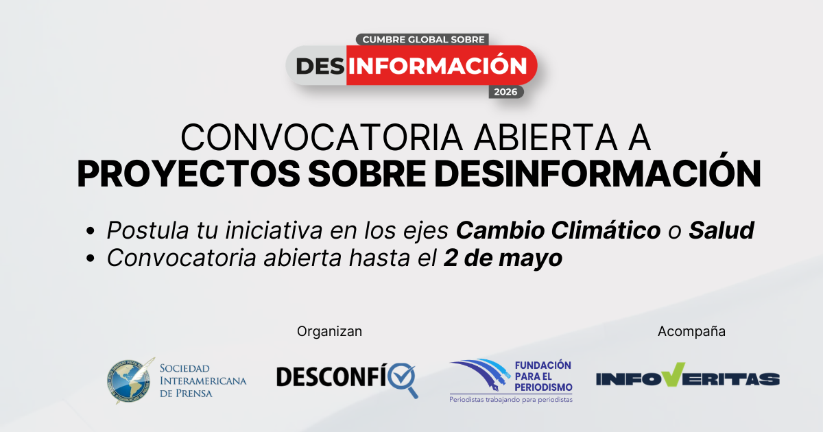 Según datos de la organización, la convocatoria ya registra postulaciones de periodistas, investigadores, tecnólogos y organizaciones de los cinco continentes, con proyectos que van desde herramientas de verificación hasta estrategias educativas y análisis aplicados.